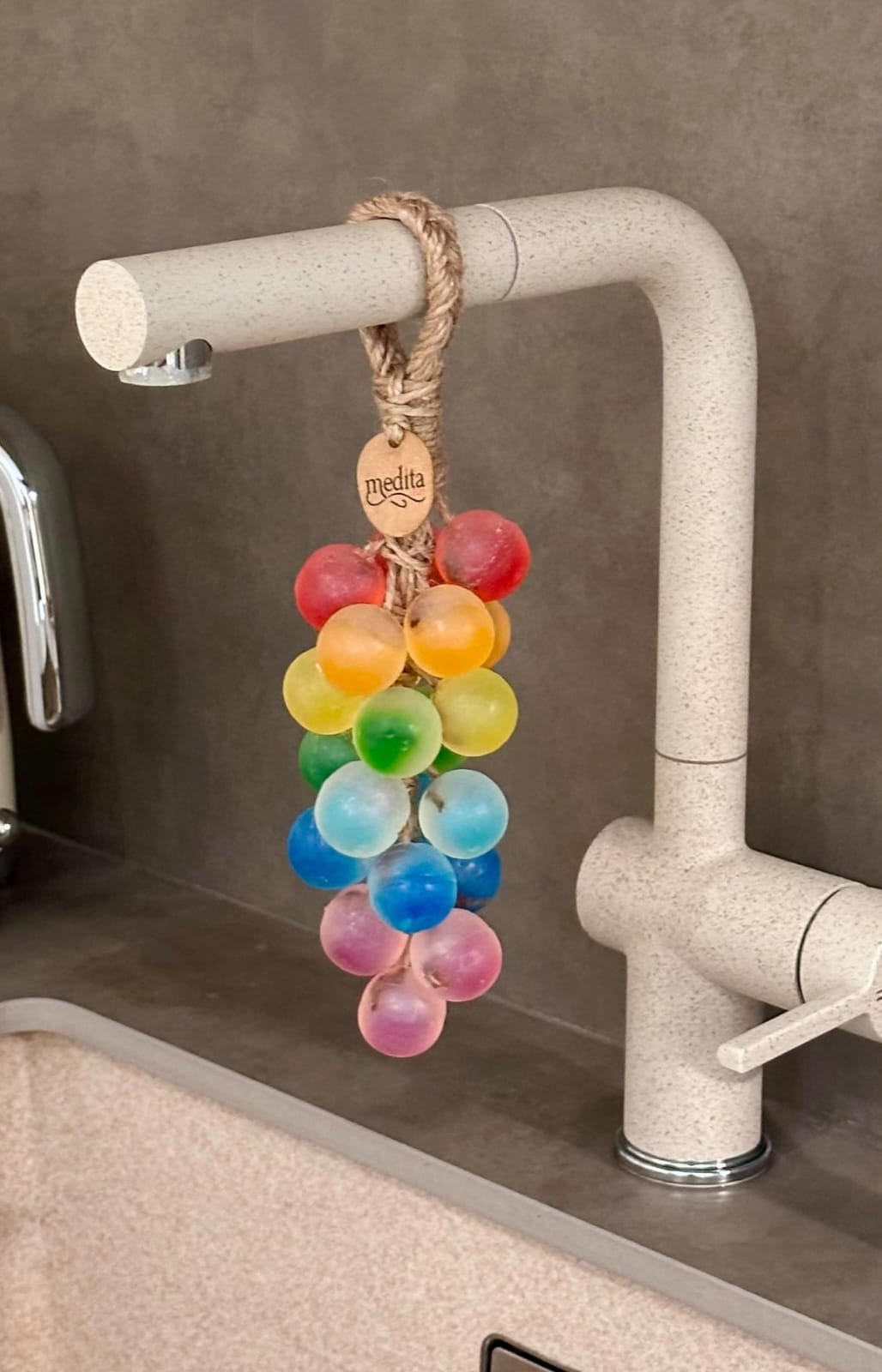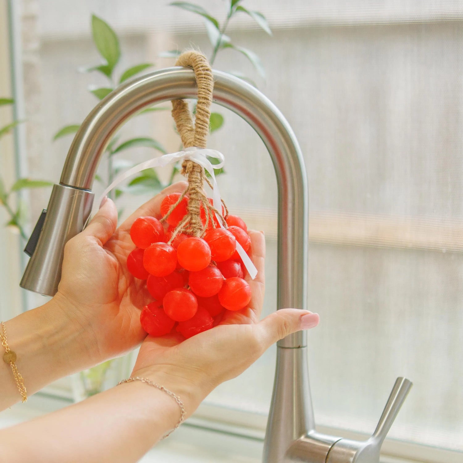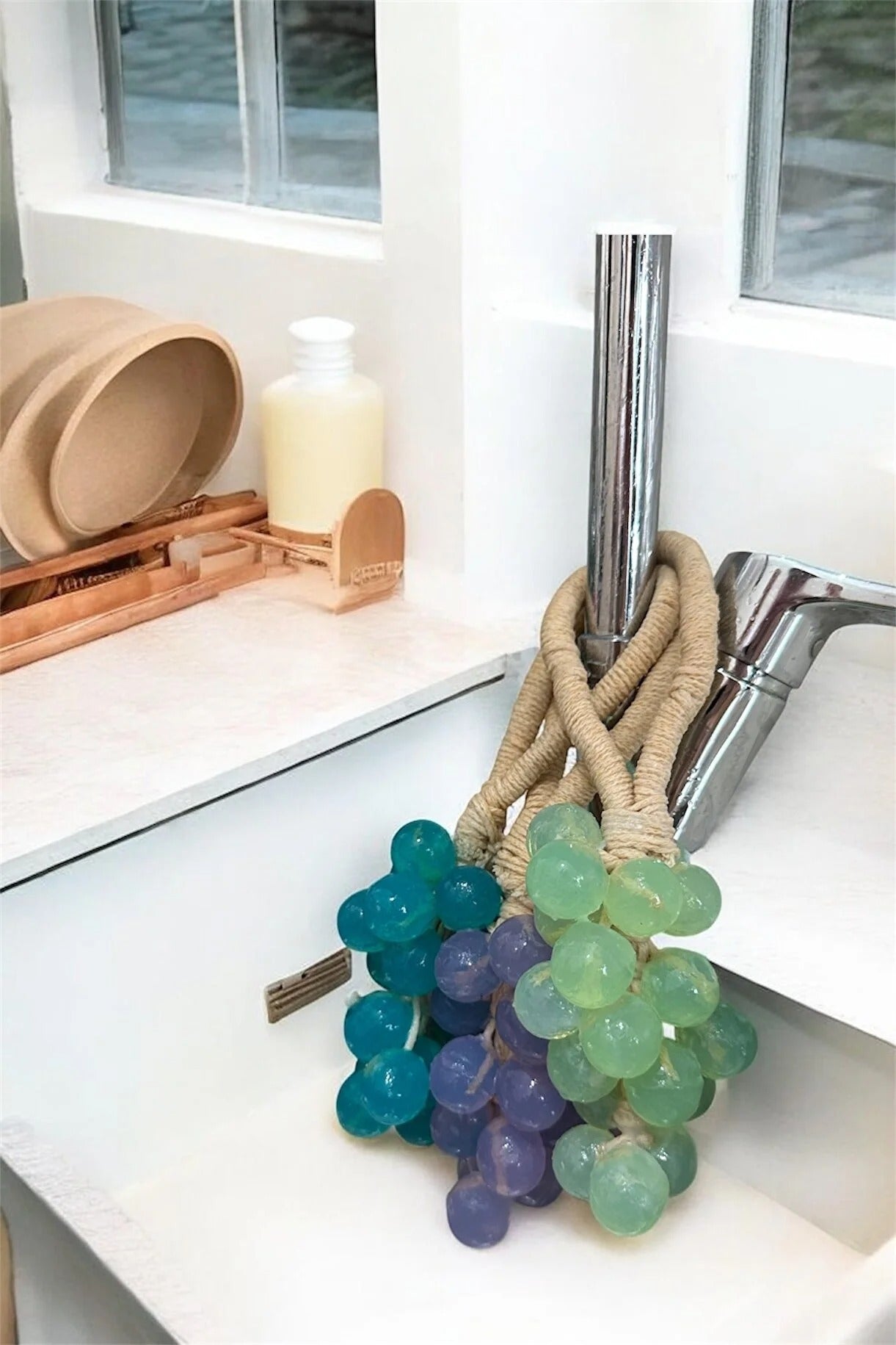 Doğal Sepet™ üzüm salkımı el sabunu ile temizlik artık çok daha keyifli. 🌿Dekoratif tasarımıyla banyonuza şıklık katar, doğal formülüyle cildinizi kurutmadan temizler.